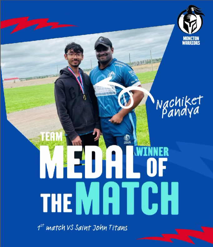 My first game in New Brunswick’s official league was an unforgettable milestone in my cricketing journey. I took 3 spectacular catches and claimed 2 crucial wickets, earning praise from the umpire for my smart and tactical bowling. Beyond the stats, I stepped onto the field determined to prove myself and embrace every challenge with focus and confidence. Walking away with the Man of the Match award and the team medal that day felt like validation of my hard work, discipline, and passion for the game — and the perfect start to this exciting new chapter in Canada.